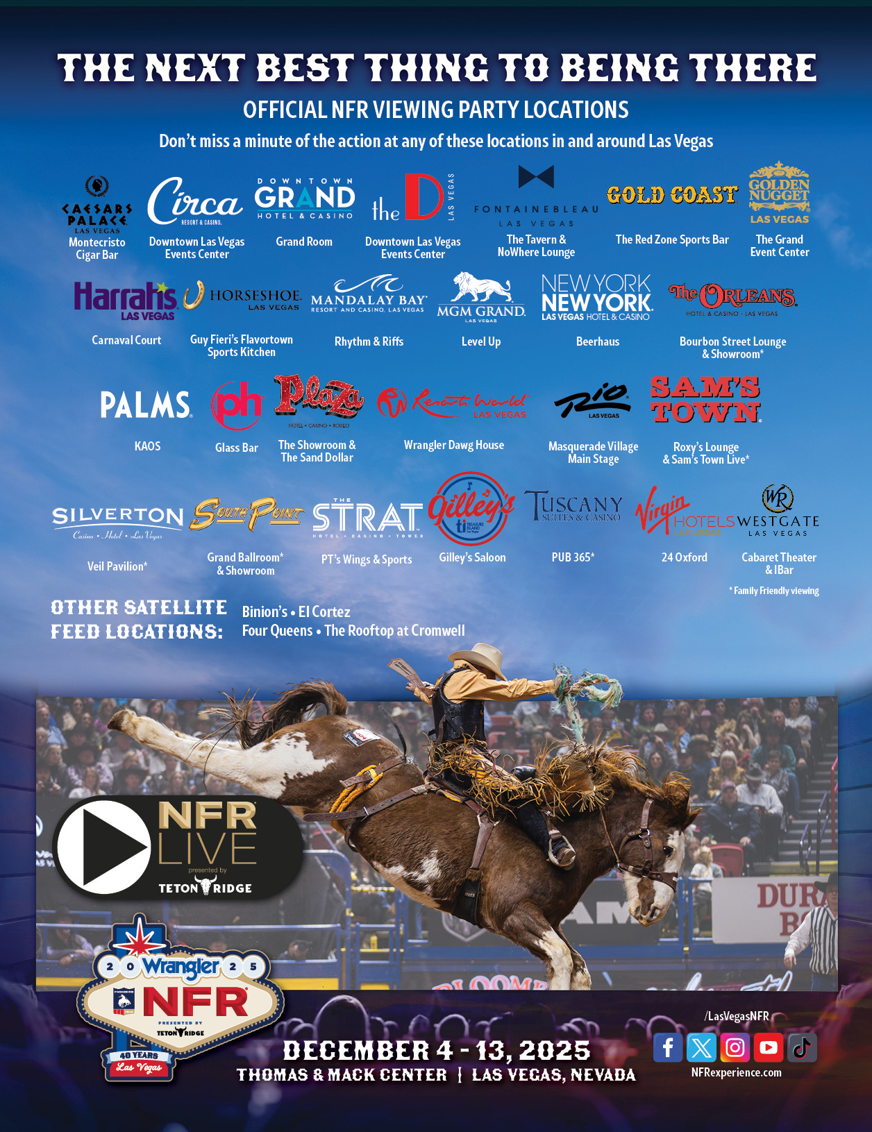 No tickets to the Wrangler NFR? We've got you covered. More than 25 hotel partners will host viewing parties of the Wrangler NFR. Check out the list below for all viewing options.